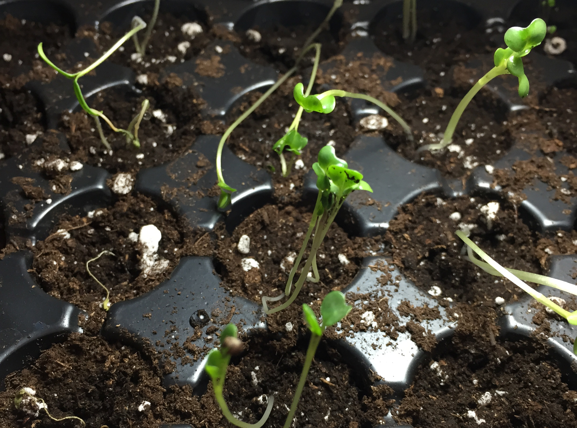This year we started with new hope, lights and a heat mat. With our fingers crossed we planted and waited. Huzzah! Those tiny green sprigs popped up. Then I moved the light to close and fried half the tray. Thank goodness for extra seeds.